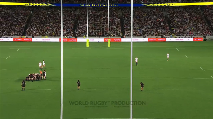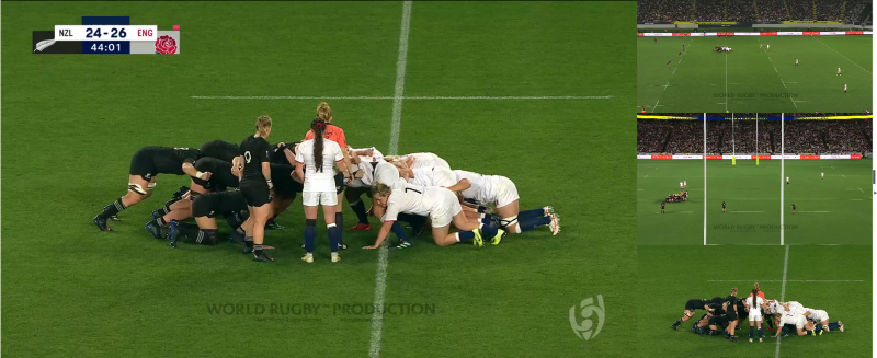 The aim of the tight angle view camera is to capture action a few metres either side of the ball. This gives greater detail to rucks, mauls, scrums and lineouts.