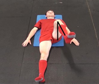 Here we present a supine position for hip internal and external rotation assessment. According to Reiman & Manske in 2009, to administer the test, the player lies supine (face up) on the floor with one leg extended and the other flexed to 90 degrees at the knee.