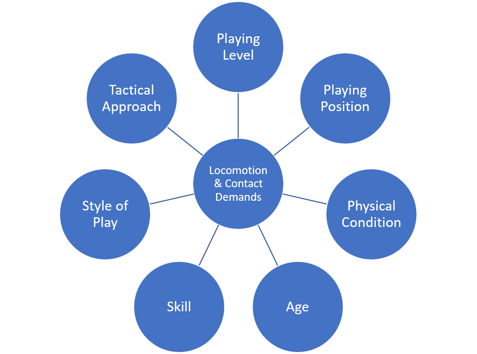Figure 1. Factors that influence locomotion and contact demands of match play.