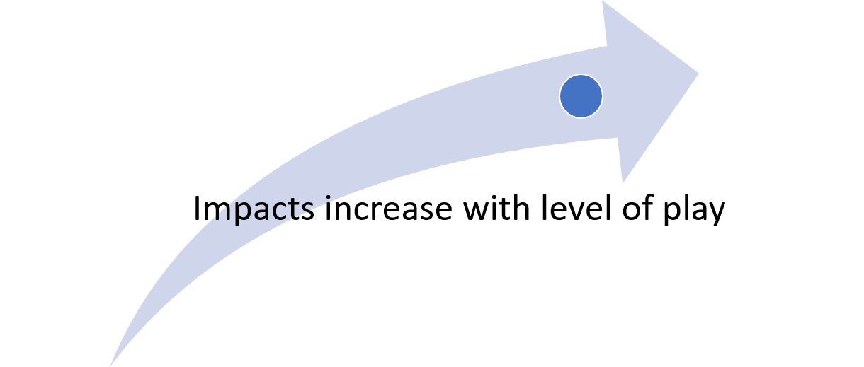 Figure 3. Evidence informs us that the number of impacts increases with the level of play.