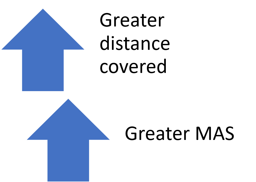 Figure 11. It has been shown that the greater a player's Maximal Aerobic Speed (MAS) capacity, the more distance is covered during match-play (Swaby et al 2016).