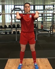 Figure 6. Catch position in modified Hang Power Clean: ‘From the bent knee position, jump, catch and hold the Quarter Squat position’.
