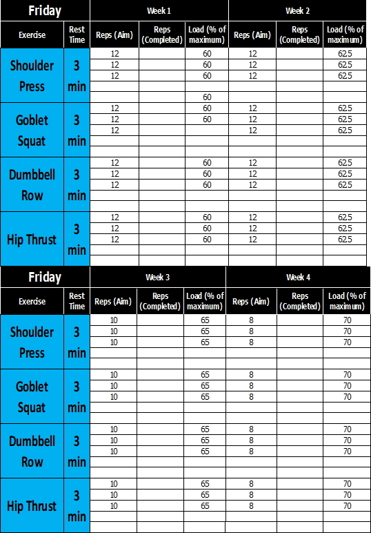 4-week resistance training plan