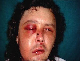- periorbitální ekchymóza – víčka/spojivka/bělima