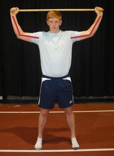 Na začátek je tyč umístěna na hlavu hráče. Ruce jsou umístěny v poloze na tyči, aby bylo zajištěno, že úhel v loktech je co nejblíže 90 stupňům.