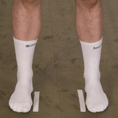 Hráč je instruován, aby stál s chodidly paralelně a v pohodlné vzdálenosti mezi nimi, zhruba na šířku boků a ramen. Trenér by si měl všimnout a poté opravit každého hráče, jehož chodidla jsou vytočená ven nebo dovnitř – bez ohledu na to, jak mírně jsou vytočeny. Pro začáteku každého dalšího opakování se vždy vraťte do této polohy.