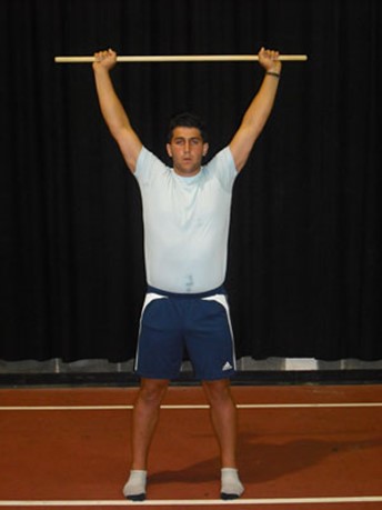K provedení screeningu Overhead Squat je potřeba základní vybavení. Podlaha, která je ideálně dřevěná nebo vinylová, zajišťuje snadné vybočení chodidla. Nedoporučujeme nikoho testovat na trávě nebo na tvrdém povrchu, jako je asfalt, který by noze poskytoval trakci nebo přilnavost. Dvě rovnoběžné čáry vyznačené na podlaze mohou být použity k označení oblasti, kde hráč stojí v přípravě na test. Je důležité, aby chodidla byla na začátku každého opakování v rovině a paralelně. Pero, papír a desky jsou dobrým nápadem pro zaznamenávání skóre hráčů, ale lze je pro pohodlí zaznamenat také na telefon s fotoaparátem. Hůl nebo násada koštěte je základním nástrojem screeningu. Hráči by se měli testovat v ponožkách, šortkách a tričku a zároveň se snažit vyhnout příliš volnému oblečení. To má zajistit, aby trenér viděl, co se děje s chodidly, koleny, trupem a pažemi během screeningu.