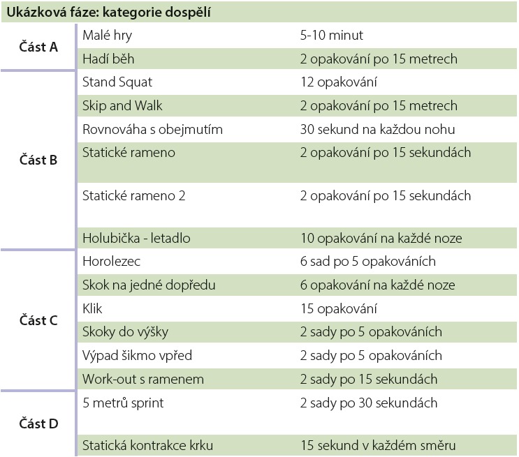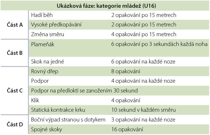 V rámci jednotlivých typů tréninkových metod pro mladé a starší hráče/ky jsou nejčastěji užívané tyto druhy cvičení: běh a změny směrů, balanční cvičení pro dolní končetiny, plyometrie, doskokové aktivity, odpory. Jako příklad pro uvedení rozdílů mezi věkově rozdílnými skupiny lze uvést tyto typy cviků: