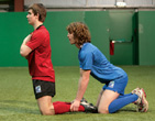 Die hier vorgestellte Einheit ist lediglich ein Beispiel dafür, was ein Erwachsenenteam auf dem Feld absolvieren kann. Die Wiederholungen und Zeiten müssen anhand der aktuellen Technik- und Erfahrungsniveaus ermittelt werden. Am besten ist es, diese Einheit als Zirkeltraining zu absolvieren – ausgehend von Übung 1 zu 2, 3, 4 usw. – und eine Pause zu machen, sobald ein Zirkel abgeschlossen ist; anschließend wird je nach Erfahrung und Technik des Spielers mit weiteren Zirkeln fortgefahren.