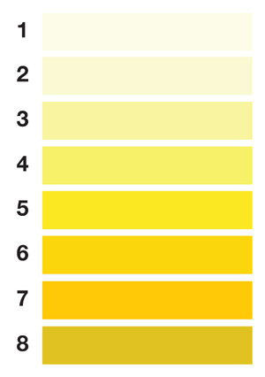Eine einfache Möglichkeit zur Überprüfung des Wasserhaushalts ist die Farbe des eigenen Urins. Hilfreich dabei ist das Schaubild unten. Ziel sollte es sein, dass der eigene Urin eine blasse Farbe aufweist, was Stufe 1 bis 3 der Tabelle entspricht. Ähnelt Ihr Urin eher der Stufe 4 bis 8, sind Sie dehydriert und sollten sich nach einem Rehydrationsprotokoll richten.