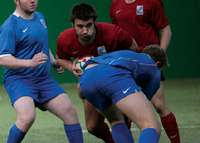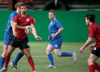 - Gelingt es den unterstützenden Spielern nicht, den Ball aufzunehmen und loszulaufen / den Ball aufzunehmen und abzugeben, wird ein offenes Gedränge gebildet; siehe Abschnitt offenes Gedränge.