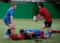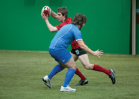 Kontakt ist jedoch beim offenen Spiel ab einem bestimmten Punkt unvermeidlich. Anhand der richtigen Techniken kann man wieder in Ballbesitz gelangen, den Angriff fortsetzen und die Verletzungsgefahr minimieren.