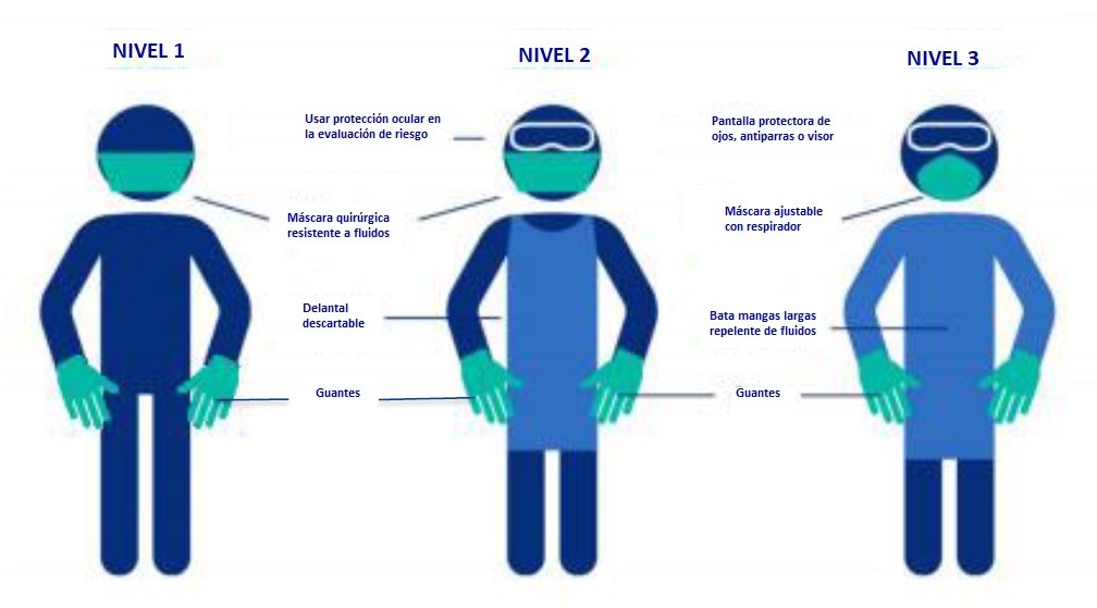 El uso de EPP dependerá de la política de las autoridades de salud pública local y/o gubernamentales y en particular puede verse influenciado por la prevalencia del COVID-19 en la comunidad