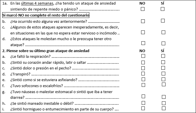 Cuestionario de salud del paciente: Trastorno de Pánico (PHQ-PD)