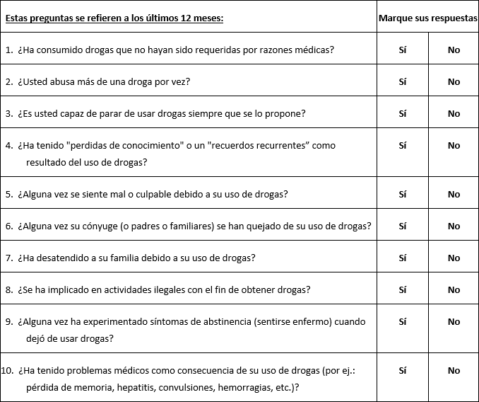 Los trastornos por uso de sustancias se pueden evaluar con la ayuda del DAST-10