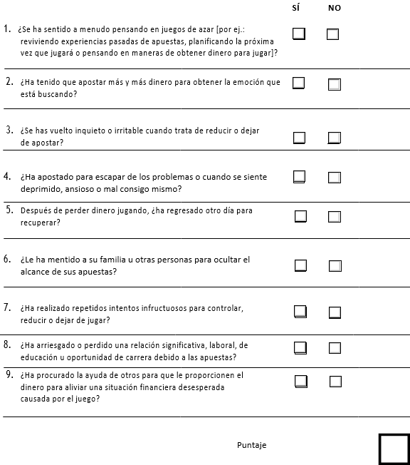 Formulario de diagnóstico del Juego Patológico DSM-V