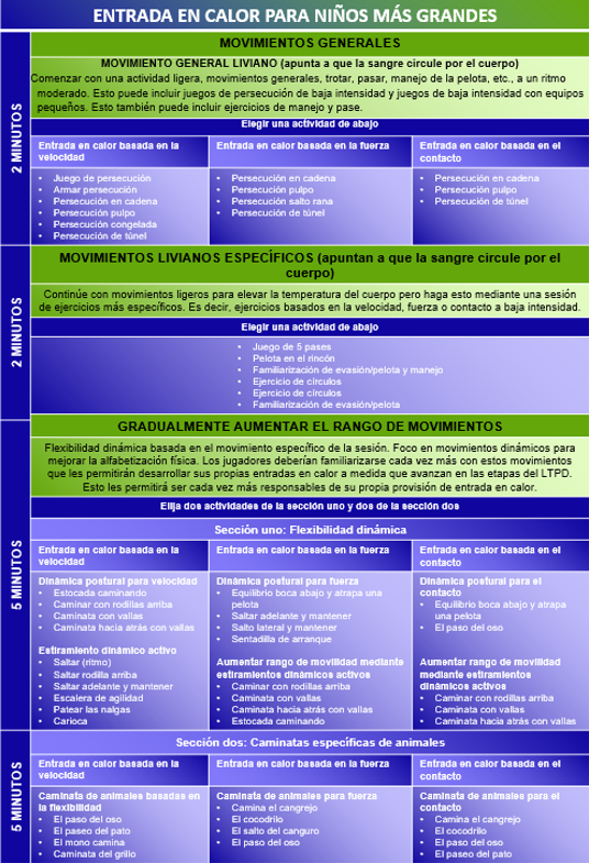 Cómo realizar una Entrada en calor para niños más grandes (Años posteriores – hasta 11/12)