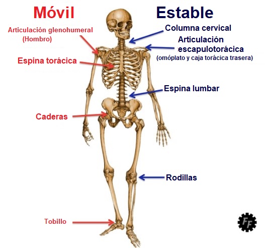 Durante el movimiento algunas articulaciones tienen una mayor necesidad de movilidad y algunas articulaciones tienen una mayor necesidad de estabilidad para funcionar eficazmente. El diagrama que sigue destaca las necesidades de las articulaciones principales del cuerpo durante el movimiento. Por ejemplo, la cadera necesita un alto grado de movilidad durante muchos patrones fundamentales de movimientos como correr y saltar por lo que la movilidad es una cualidad importante para esta articulación. Si una articulación no posee la movilidad o estabilidad adecuadas que necesita durante el movimiento pueden aparecer patrones de movimientos defectuosos y disfuncionales. La evaluación funcional es un método eficaz para observar los patrones fundamentales de movimientos de un jugador e identificar desequilibrios de movimientos (Cook y otros, 2010; Cook y otros, 2014). La evaluación es el proceso de evaluar los patrones de movimientos de un jugador y brinda a los entrenadores información sobre la movilidad, estabilidad y equilibrio muscular de las articulaciones de un jugador (Bishop y otros, 2015). El aspecto ""funcional"" en la Evaluación funcional se refiere a un movimiento que es comúnmente usado en la actividad física y el deporte, por ejemplo, el movimiento de sentadilla. La realización de la sentadilla es un movimiento común usado diariamente por todas las personas activas. El patrón de movimiento de sentadilla se produce al sentarse, levantarse después de estar sentado o al agacharse para recoger un objeto. Los jugadores de rugby se ponen en cuclillas con frecuencia durante el entrenamiento, la práctica y el partido. Los jugadores pasan a una forma de sentadilla cuando se están preparando para formar un scrum, usan un patrón de sentadilla para prepararse para saltar en un lineout y usan una forma de sentadilla cuando empujan a un oponente hacia atrás en un tackle. Se puede decir que la sentadilla es un patrón de movimiento ""funcional"" común en el Rugby. Usando un patrón de movimiento de Sentadilla de arranque podemos observar y evaluar la capacidad de movimiento de un jugador. Esto puede ayudar a destacar cualquier desequilibrio en términos de tensión o debilidad muscular y problemas de movilidad/estabilidad de las articulaciones que puedan existir al completar ese movimiento (Cook y otros, 2010; Clifton y otros 2015). El objetivo es ayudar al entrenador a observar posibles zonas de desequilibrio para que puedan diseñar un programa de entrenamiento más personalizado para sus jugadores.