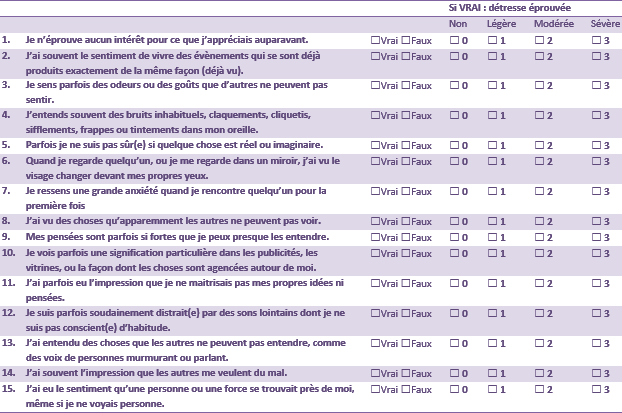 La psychose peut être évaluée avec l'aide du Questionnaire Prodromal : version abrégée.