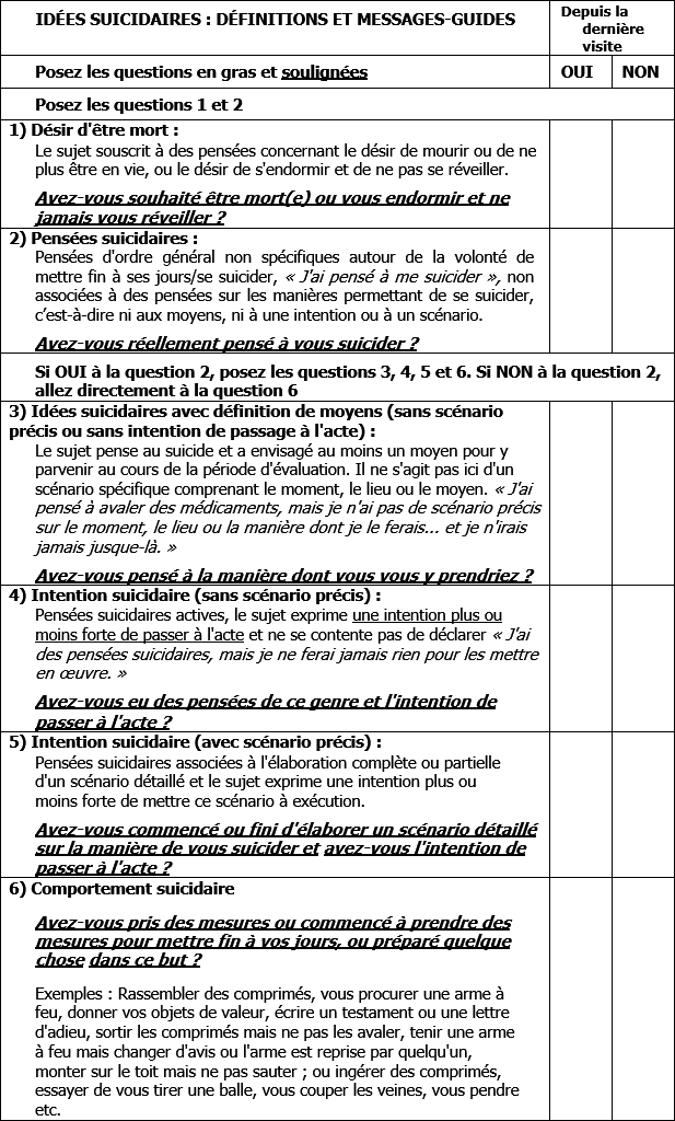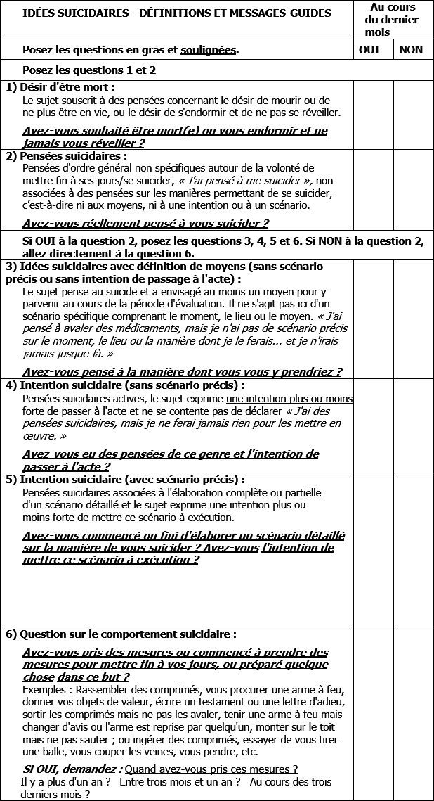 Annexe 12 - Outil d'évaluation du risque suicidaire