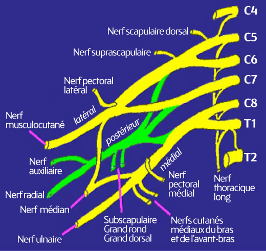 - Touche généralement les racines nerveuses C5/6 ou les troncs supérieurs du plexus brachial Évaluation possible des myotomes C5/6 via un test de résistance pour