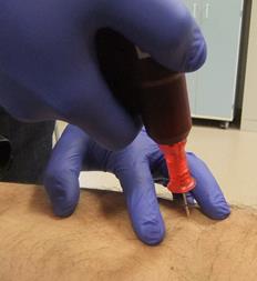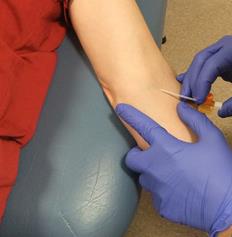 Accesso IV con una cannula a foro largo (calibro 14) attraverso la fossa anticubitale