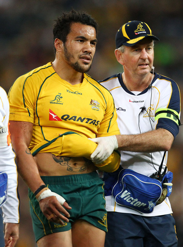 Le lesioni dolorose all'arto superiore, in cui il giocatore è riluttante a muoversi, possono essere semplicemente sostenute ripiegando la maglia da rugby su sé stessa e infilandovi il braccio ferito.