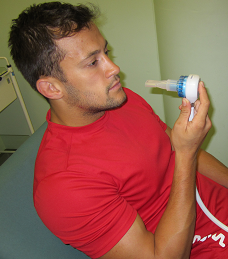 Entonoxは医師の監視下で投与します。マウスピース、バイトブロックもしくは顔面マスクを使用しガスをデマンド弁から自己吸入により投与します。デマンド弁は、傷病者が呼吸をすることで生じる小さな負圧で開きます。亜酸化窒素は同弁の呼出努力ポートから吐き出されます。