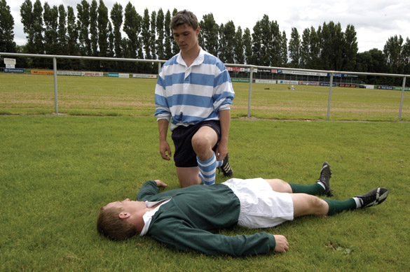 負傷して試合から退場させたプレーヤーは、全員適切な監督下に置き、コンディションが悪化する場合に備えて、決して一人にさせないようにしてください。少しでも疑いを持った場合は、すぐに援助を求めるか病院を受診させるべきです。