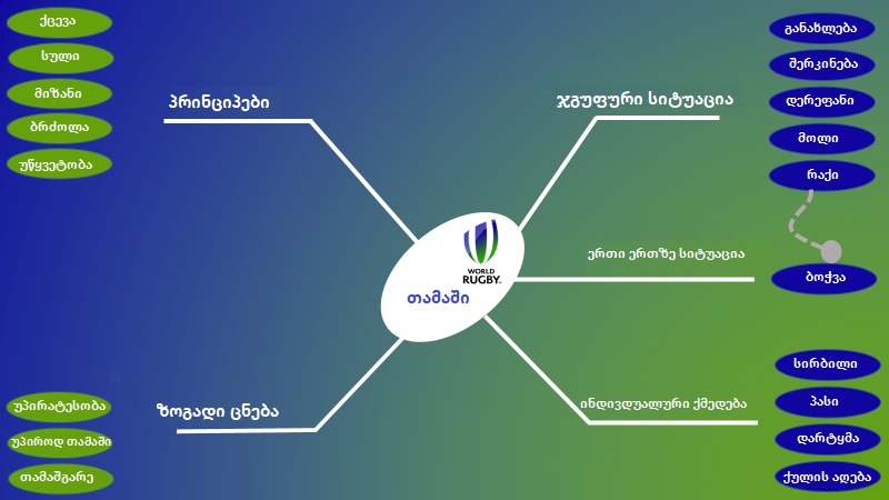 ეს არის ის პრინციპები, რომელზეც რაგბის თამაში არის დაყრდნობილი და ეს პრინციპები ხდის ამ სპორტს განსხვავებულს. ქვემოთ მოყვანილი დიაგრამა გვიჩვენებს, თუ როგორ უკავშირდება ეს მსაჯობას.