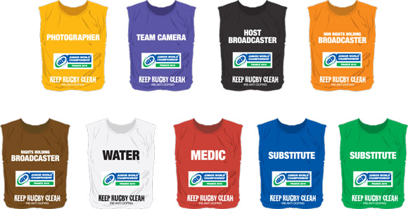 The tournament bibs from the IRB Junior World Championship 2013