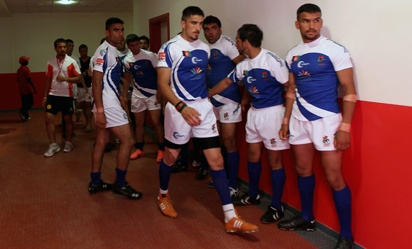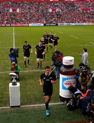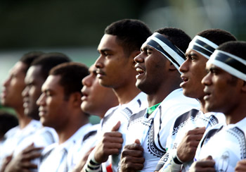 Tonga performs its cultural challenge prior to kickoff