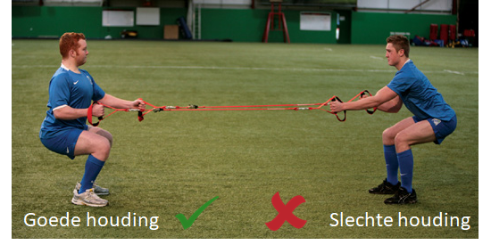 Squat zo laag mogelijk met behoud van een rechte rug. Squat op een langzaam en gecontroleerd tempo. Kijk recht vooruit. Houd uw hielen op de grond gedurende de gehele oefening. Een variant bestaat er in om een bal boven het hoofd te houden.