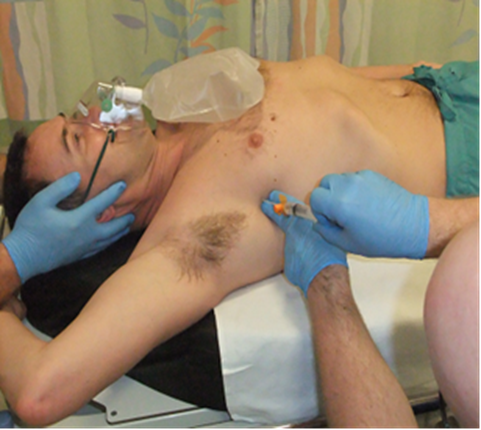 - Remove the needle, leaving the cannula in-situ. Listen for a sudden escape of air, which will indicate decompression of a tension pneumothorax