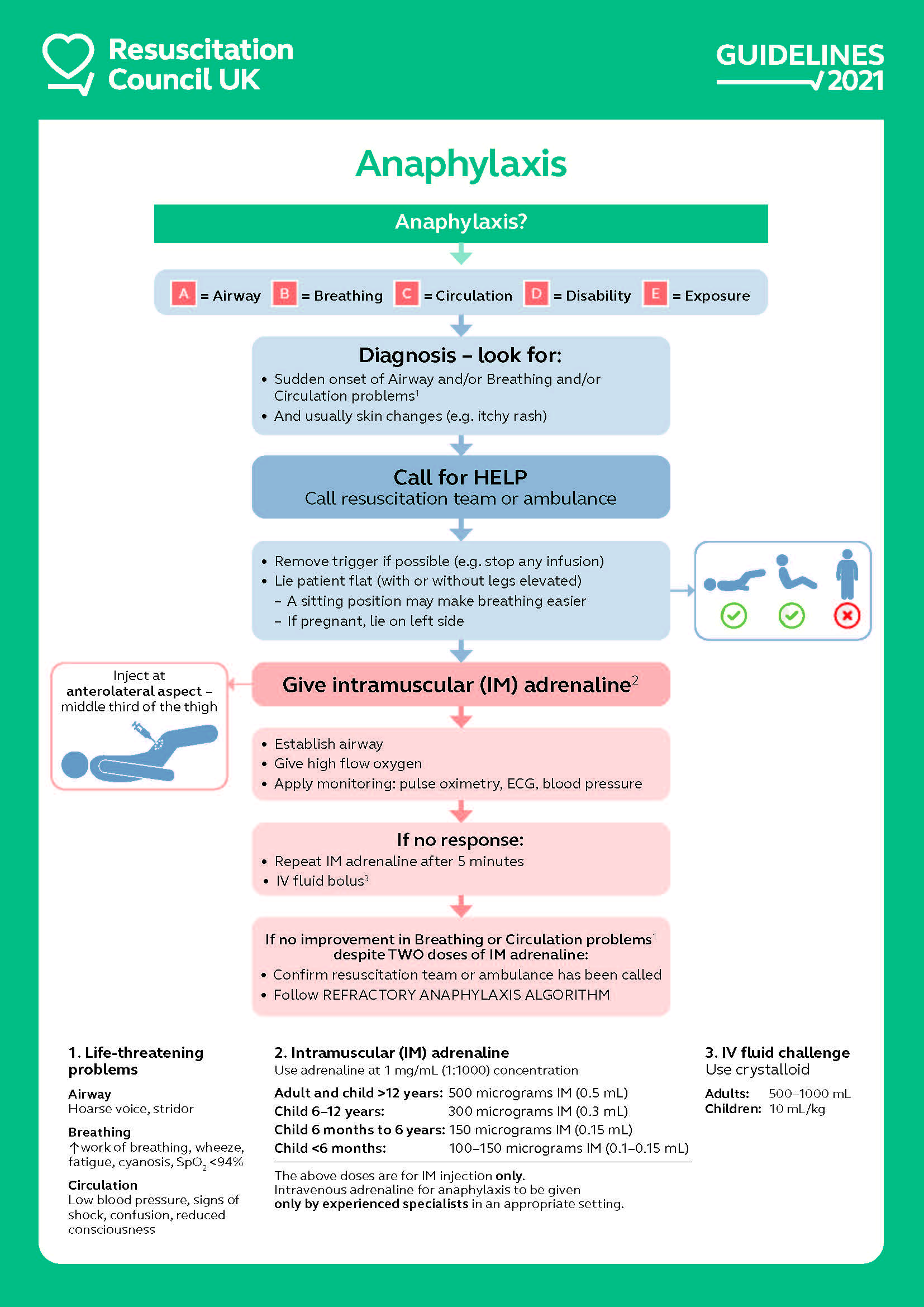 - IM adrenaline 0.5 mls 1:1000 (500 mcg)