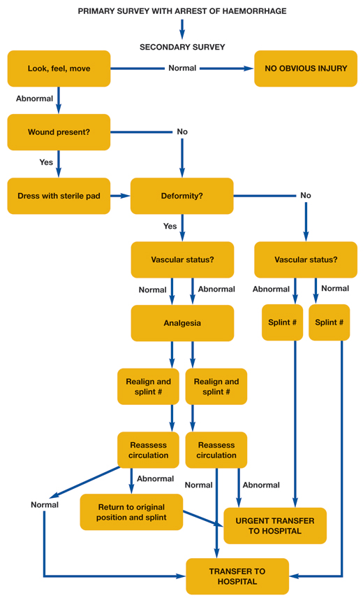 An algorithm for the pre-hospital management of lower limb fractures (Lee and Porter 2005) is shown in figure 1.