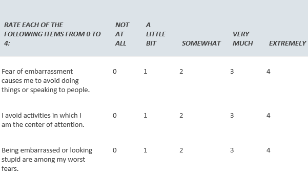Mini-SPIN Screening Tool for Social Phobia