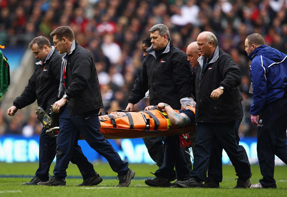 În rugby, majoritatea accidentărilor se produc la nivelul membrelor și sunt de regulă lovituri, zgârieturi, luxații și entorse. Rugby este un sport care implică coliziuni și care presupune placarea cu brațele și umerii. Acest lucru antrenează riscul minor ca un jucător să fie făcut cnocaut (în stare de inconștiență). Pe teren, un jucător poate ajunge în stare de inconștiență după o lovitură la cap, dar în alte situații, precum în vestiar, această stare se poate datora unei afecțiuni medicale, de exemplu, un jucător diabetic poate avea un nivel extrem de scăzut de zahăr în sânge (hipoglicemie) sau chiar poate suferi un stop cardiac.
